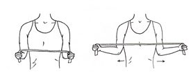 با زاویه آرنج ۹۰ درجه، بازو ها را به یکدیگر نزدیک و از هم دور کنید. از کش نرم کمک بگیرید.