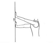 با آرنج صاف دستهایتان را روی دیوار بگذارید و به بالا حرکت دهید تا احساس کشش کنید.