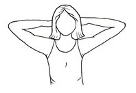 دست ها را پشت سر بگذارید و به آرامی آرنج ها را به عقب بکشید. پس از جراحی بازسازی، تا خروج درن این حرکت را انجام ندهید.